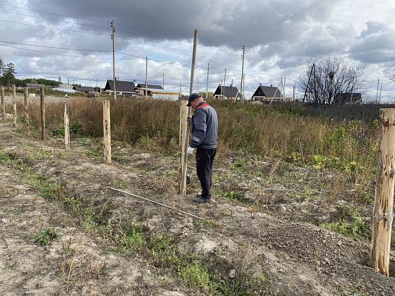 Валерия Горбунова тоже работают на улице. Алексей Михайлович устанавливает бревна для забора, его жена Наталья Станиславовна делает насыпные грядки. Глава семьи пояснил, что пока стоит погода, надо успевать прибрать территорию, в доме работы начнутся позже.