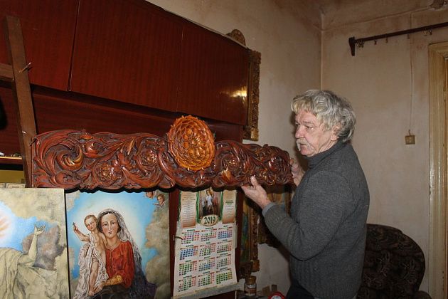 Ценности, никому не нужные. Жилище художника изобилует резными деревянными изделиями собственной работы – “передник” для вешалки, полка под телефон, даже оклады к иконам Алик режет сам. Правда, сейчас на это нет материала. Каждая из вещей – истинная ценность, которая нынче почему-то обесценена в ноль.