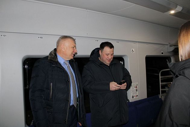 На станции Бокситы перед электропоездом натянули красную ленточку и под аплодисменты торжественно ее перерезали. Маршрут был определен заранее – до первой минутной остановки в Лесной Волчанке. Вскоре в вагоне с провожающими появились еще две публичных личности – депутат ЗакСо, бывший глава Ивделя Петр Соколюк и глава Волчанска Александр Вервейн. Большие гости прошлись по вагону, заглянули в санузел, внимательно осмотрели сиденья, полки и прочее обустройство электропоезда и, судя по всему, остались абсолютно довольны.