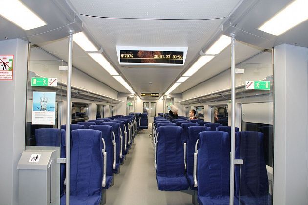 «Ласточка» к нам приехала абсолютно новая, в ней даже пахнет идеальной чистотой. В вагонах мягкие, обтянутые синей тканью сидения – всего посадочных мест 386. Правда, спинки не откидные. В крайних вагонах – санузлы. Вскоре после того, как поезд тронулся, мужской голос из вещателя сообщил: «Наш электропоезд оборудован экологически чистыми туалетными комплексами замкнутого типа, попадание в него туалетной бумаги, предметов гигиены или других посторонних предметов приведет к неисправности. Просьба пользоваться урнами». Электронный экран на потолке вагона показывает температуру воздуха за бортом (минус 6 градусов) и внутри вагона (плюс 25), а также скорость движения, которая, как сообщил машинист электропоезда (отвечая на вопрос заместителя главы Североуральска Олега Уса) не превышает 60-80 километров в час.