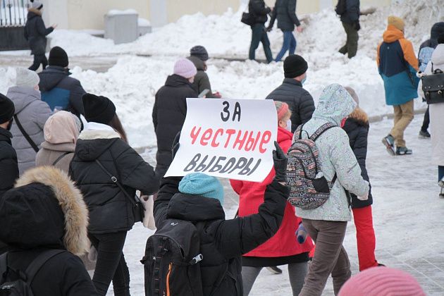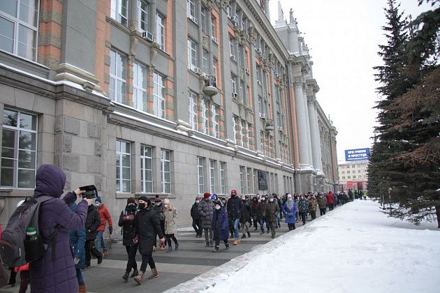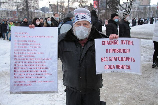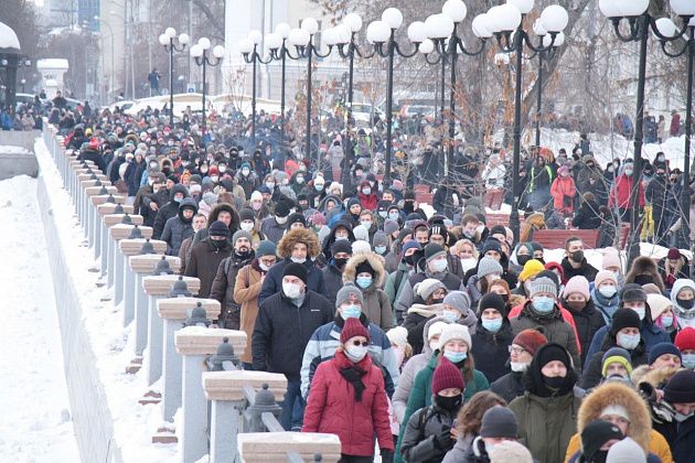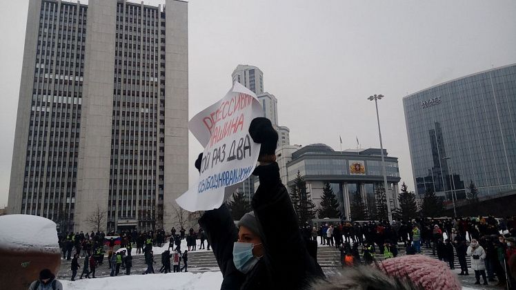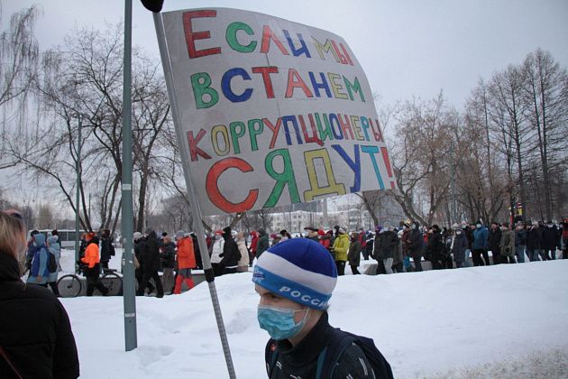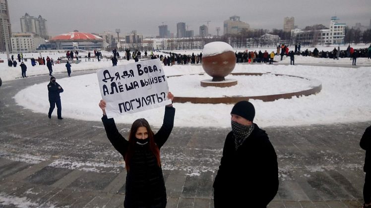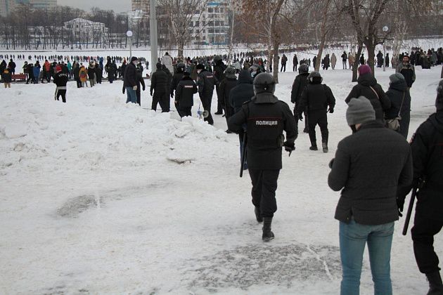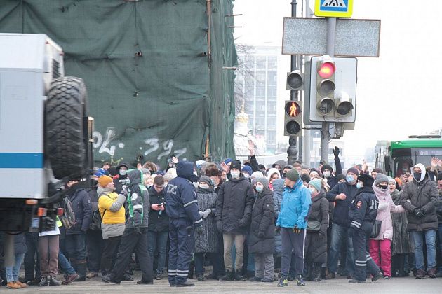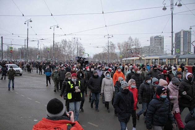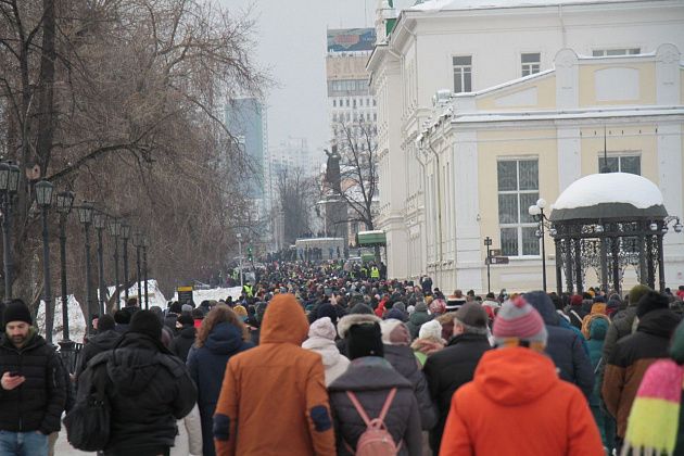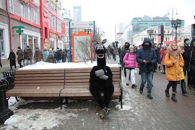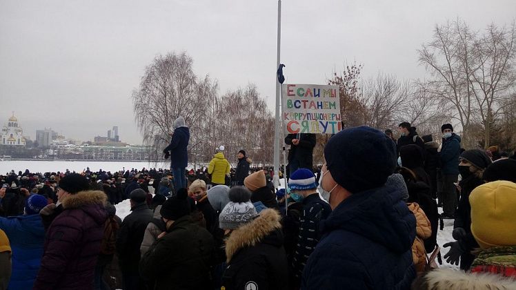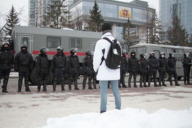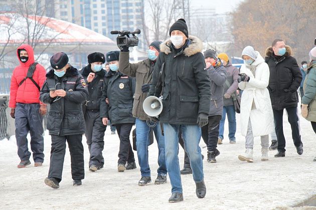 31 января в Екатеринбурге прошла вторая за неделю несанкционированная акция в поддержку находящегося в следственном изоляторе оппозиционного политика Алексея Навального.